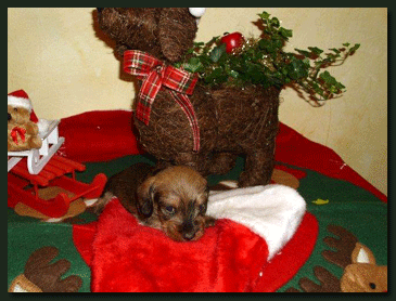 1,3 Welpen geworfen, davon 1,2 rot und 0,1 saufarben. |