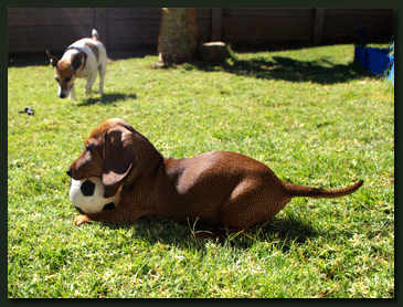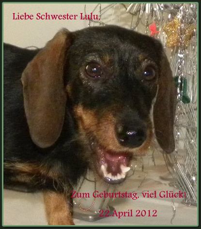 Leni feierte am 18. September Ihren 5. Geburtstag !!! ... nach einem opulenten Frühstück nach Teckelgeschmack ging es auf Shoppingtour in Leni´s Lieblingscenter "Pflanzen Kölle". Leni durfte sich, wie in jedem Jahr, ein Lieblingsspielzeug aussuchen. Leider haben sich ihre Frauchen auch diesmal, trotz eigesetzter Spezialwaffe "Dackelblick", nicht erweichen lassen. Leni ist in jedem Jahr erneut der Ansicht, daß so ein lebendiger, kuscheliger Minihoppler ein "Muss" für jeden Teckel darstellt. Somit mußte man sich notgedrungen für den x-ten Quietscher entscheiden, welcher nach beendetem "Festakt" in die große Kiste mit Spieltieren wandert, um irgendwann wieder "ausgebuddelt" zu werden ... |