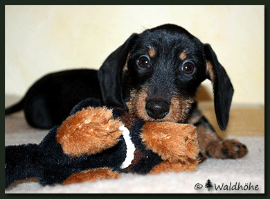 Welpenkäufer, die aus meiner Zucht einen Teckel erwerben, bekommen einen nach bestem Wissen und Gewissen aufgezogenen Welpen anvertraut. Aber jeder Welpenkäufer sollte sich dessen bewusst sein, dass er einen altersgeprägten Welpen erworben hat und die weitere Entwicklung abhängig von seiner Konsequenz und seinem Einfühlungsvermögen ist. |